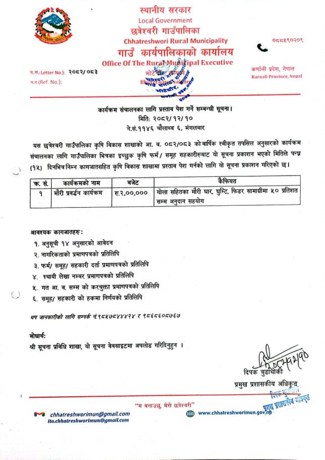 कार्यक्रम संचालनका लागि प्रस्ताव पेश गर्ने सम्बन्धी सूचना ।