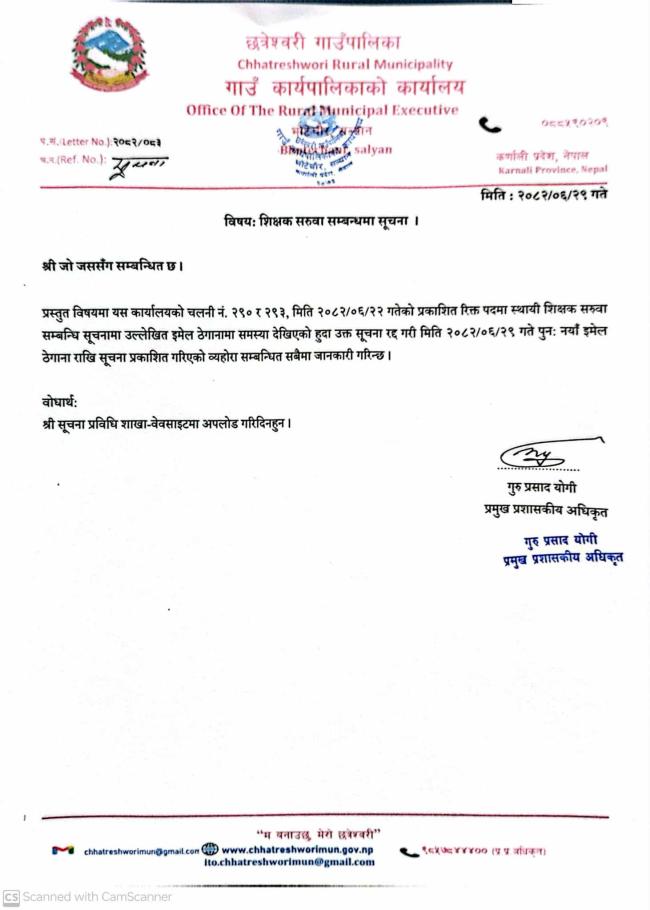 रिक्त पदमा स्थायी शिक्षक सरुवा सम्बन्धी सूचना ।