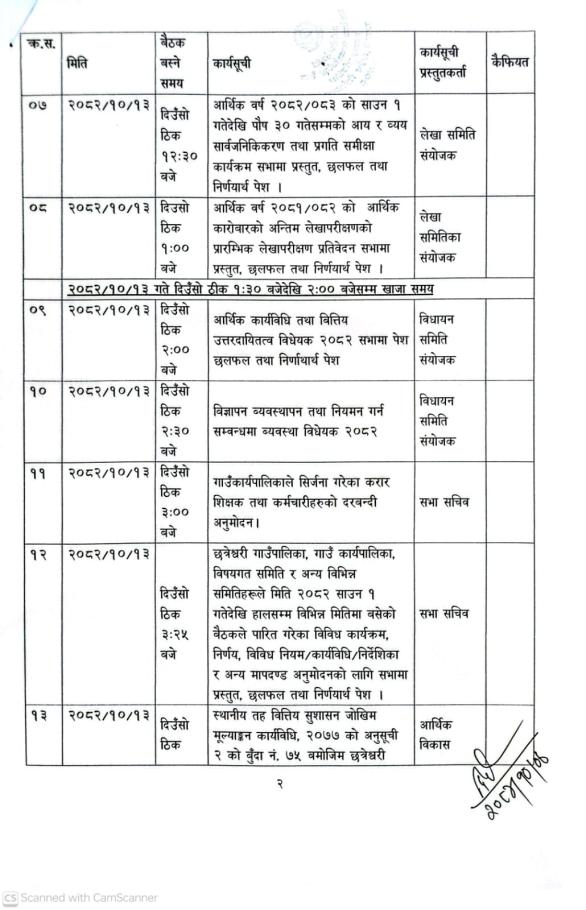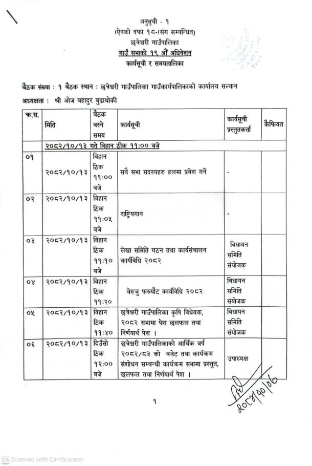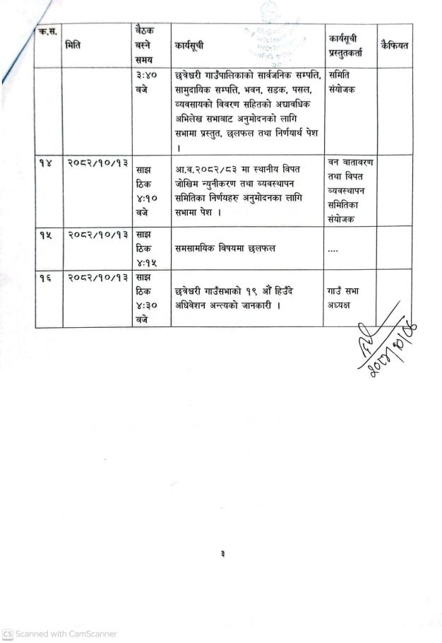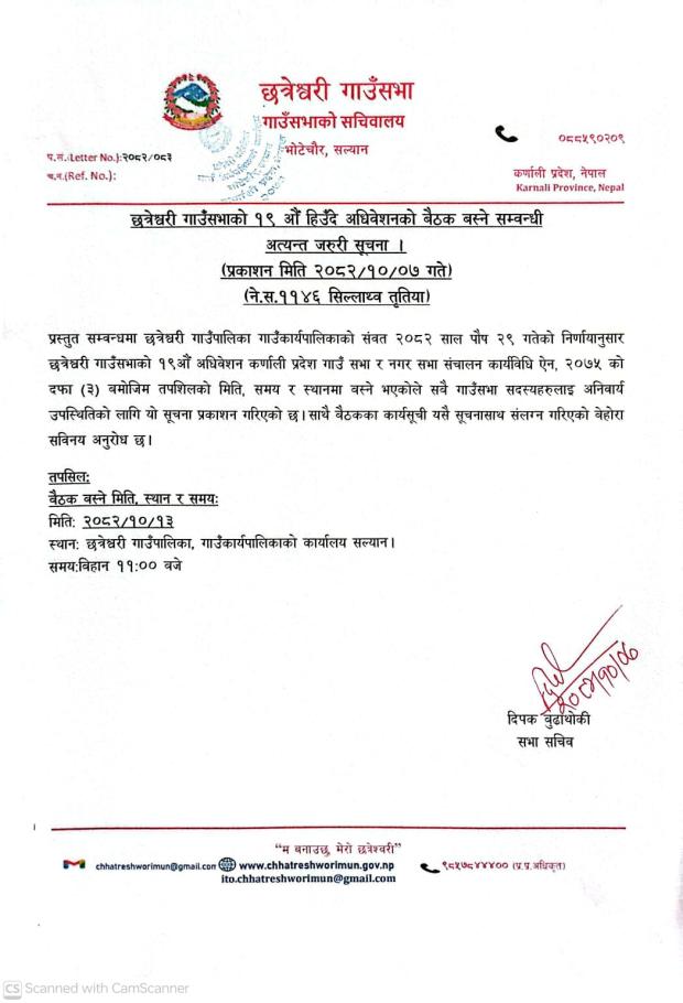छत्रेश्वरी गाउँसभाको १९ औं हिउँदे अधिवेशनको बैठक बस्ने सम्बन्धी अत्यन्त जरुरी सुचना ।