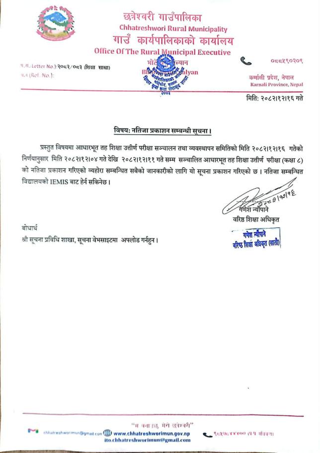 नतिजा प्रकाशन सम्बन्धी सूचना ।।