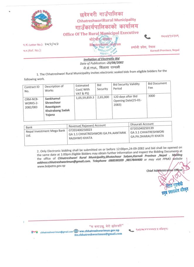 सार्वजनिक खरिद/बोलपत्र सूचना