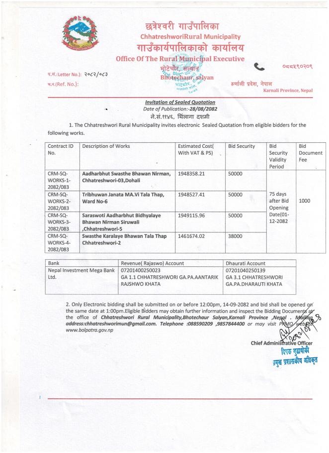 सार्वजनिक खरिद/बोलपत्र सूचना